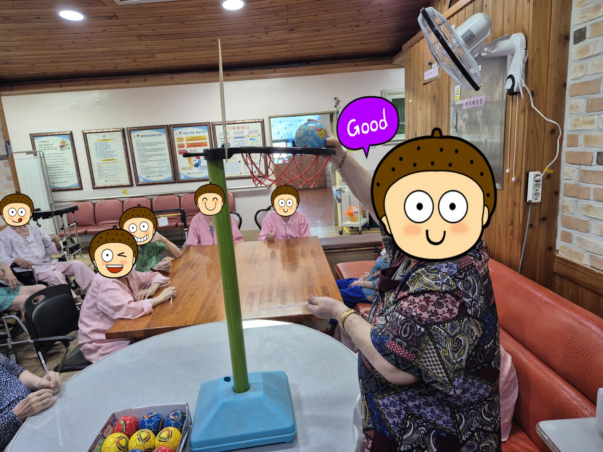 이번에 어르신과 함께 미니 농구 활동을 진행하였습니다! 어르신들이 즐거워하며 공을 림에 맞춰 골대에 넣으니 미소를 지으셨습니다!